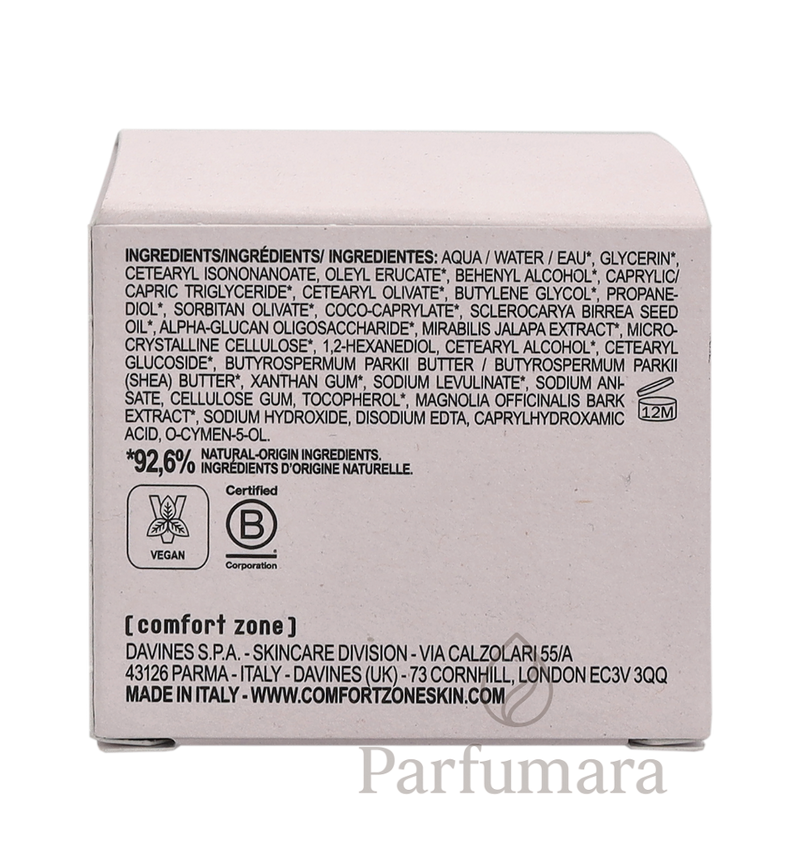 Aqua, Water, Eau, Glycerin, Cetearyl Isononanoate, Oleyl Erucate, Behenyl Alcohol, Caprylic/Capric Triglyceride, Cetearyl Olivate, Butylene Glycol, Propanediol, Sorbitan Olivate, Coco-Caprylate, Sclerocarya Birrea Seed Oil, Alpha-Glucan Oligosaccharide, Mirabilis Jalapa Extract, Microcrystalline Cellulose, 1,2-Hexanediol, Cetearyl Alcohol, Cetearyl Glucoside, Butyrospermum Parkii Butter, Butyrospermum Parkii (Shea) Butter, Xanthan Gum, Sodium Levulinate, Sodium Anisate, Cellulose Gum, Tocopherol, Magnolia Officinalis Bark Extract, Sodium Hydroxide, Disodium EDTA, Caprylhydroxamic Acid, o-Cymen-5-ol